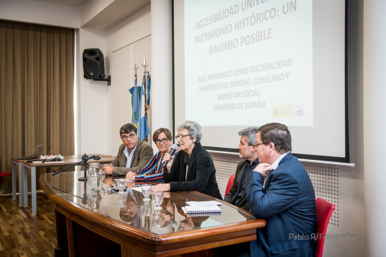 En ella expuso definiciones, datos estadísticos y conceptos generales sobre discapacidad y accesibilidad, describió una serie de elementos necesarios para trabajar sobre ella (amplio conocimiento, empatía, identificación de objetivos, actuaciones singulares), profundizó sobre las exigencias establecidas en la legislación española y argentina (convenciones locales e internacionales), puntualizó las distintas actuaciones que realiza el Real Patronato, para finalmente explicitar la estrategia integral desarrollada en España en los principales edificios y monumentos integrantes de su Patrimonio, bajo la consigna “Cultura para Todos” y con la tecnología como gran aliado.