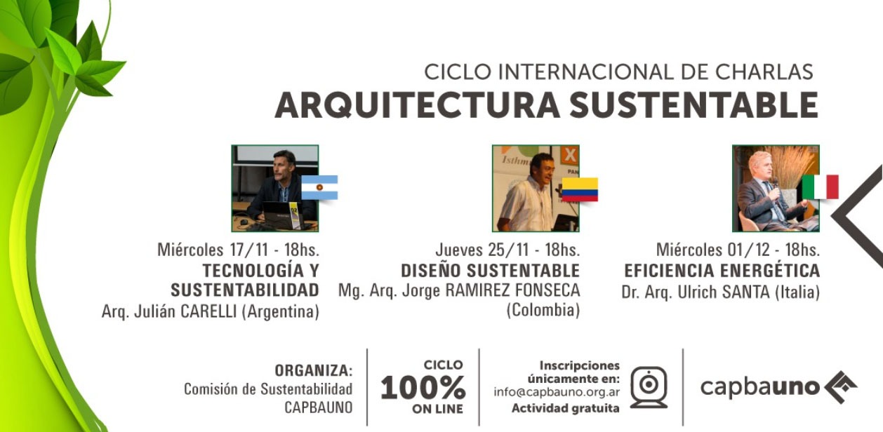 La iniciativa se desarrolla en forma virtual y contará con la participación el miércoles 17/11 del argentino Julián Carelli -especializado en tecnología aplicada a la sustentabilidad-, el jueves 25/11 del Arquitecto colombiano Jorge Ramirez Fonseca -desarrollando conceptos de diseño sustentable- y el italo-austriaco Ulrich Santa estará el miércoles 1/12 –de amplia trayectoria en el campo de la eficiencia energética-.