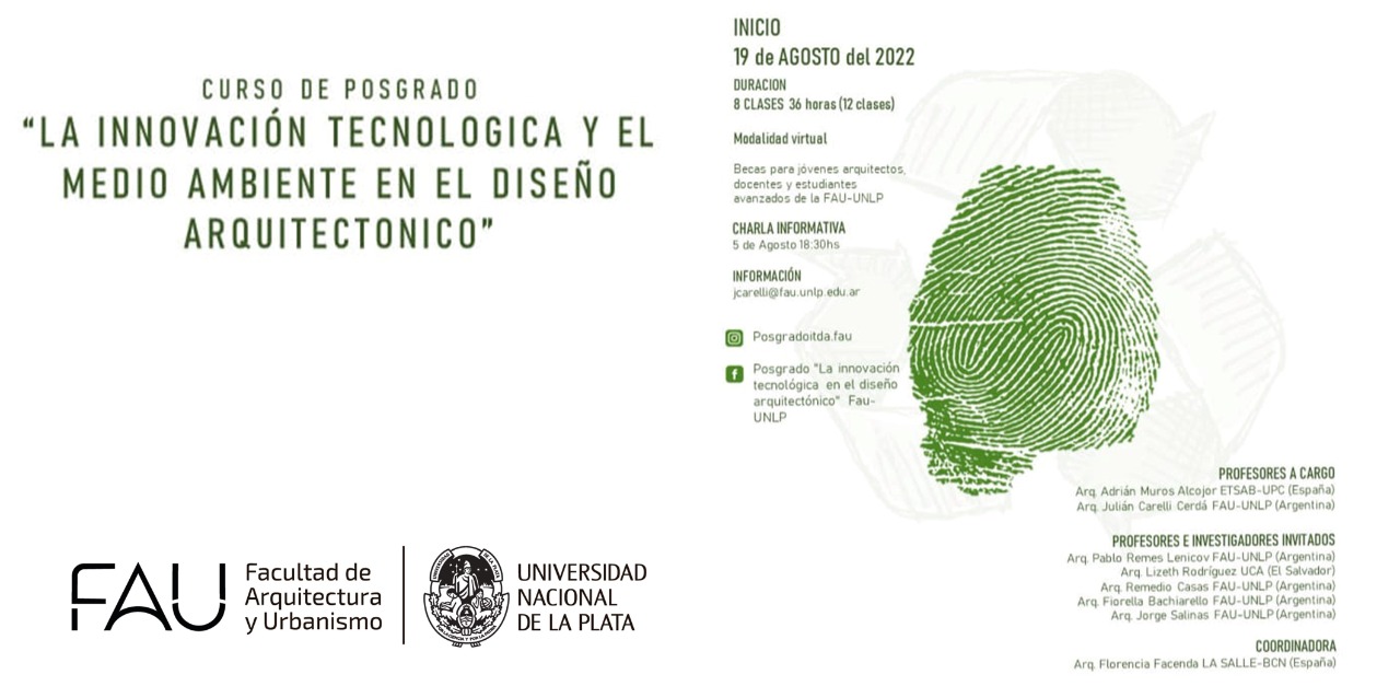 Más información e inscripciones en: https://www.fau.unlp.edu.ar/posgrado/la-innovacion-tecnologica-y-el-medio-ambiente-en-el-diseno-arquitectonico/