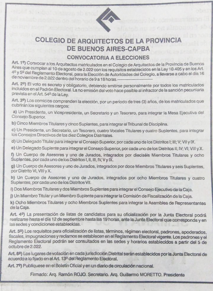 CAPBA CS CONVOCATORIA A ELECCIÓN DE AUTORIDADES CAPBA 2022