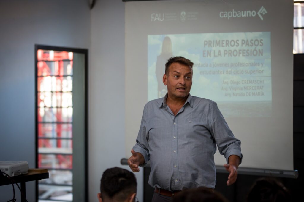 La misma se inscribió en el marco de las actividades conjuntas que se vienen desarrollando entre el CAPBAUNO y la FAU-UNLP, y tuvo por objeto mostrar distintos abordajes del ejercicio profesional, a partir de experiencia personal de 3 reconocidos profesionales y las historias y planes detrás de cada comienzo.