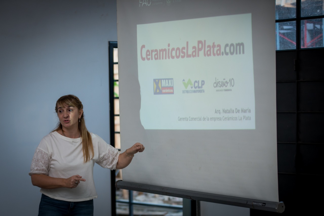 Finalmente, la Arq. Natalia De María -Gerenta Comercial de la empresa Cerámicos La Plata-, relató sus comienzos en relación de dependencia en la empresa como pasante y su evolución hasta hacerse cargo de la gerencia de Maxi Cerámicos, Cerámicos La Plata.com, la distribución mayorista y la conducción de la línea de venta “Diseño 10”, en estrecha y permanente relación con profesionales del sector.