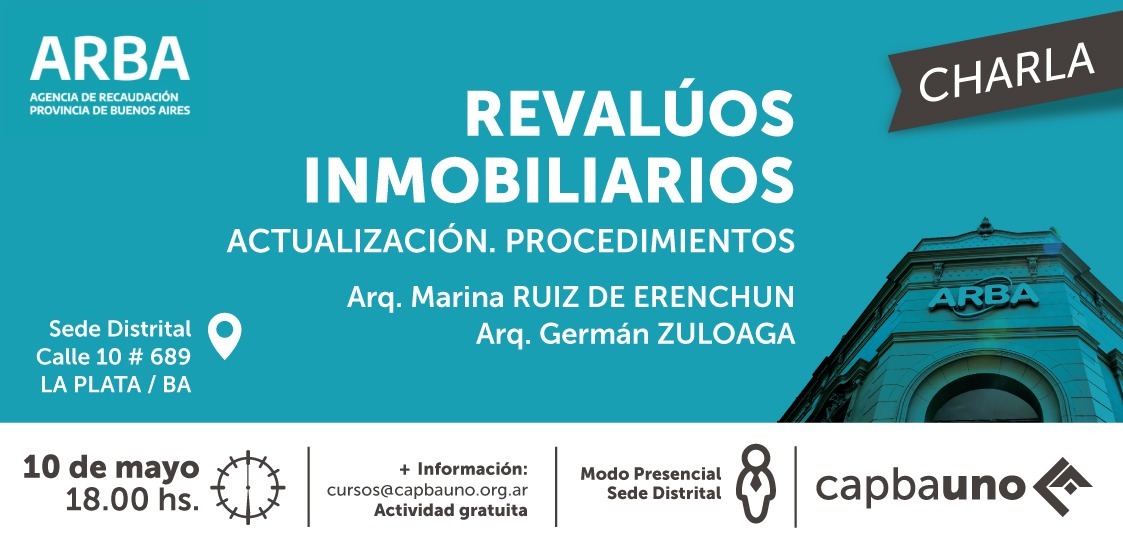 El próximo miércoles 10/5 a las 18 hs, en forma presencial en la Sede Distrital y con carácter gratuito, se desarrollará una capacitación con el objetivo de instruir a los matriculados en la tramitación de los revalúos inmobiliarios exigidos por la Agencia Recaudatoria Bonaerense (ARBA) y los Municipios, al momento del final o registro de obras de construcción.