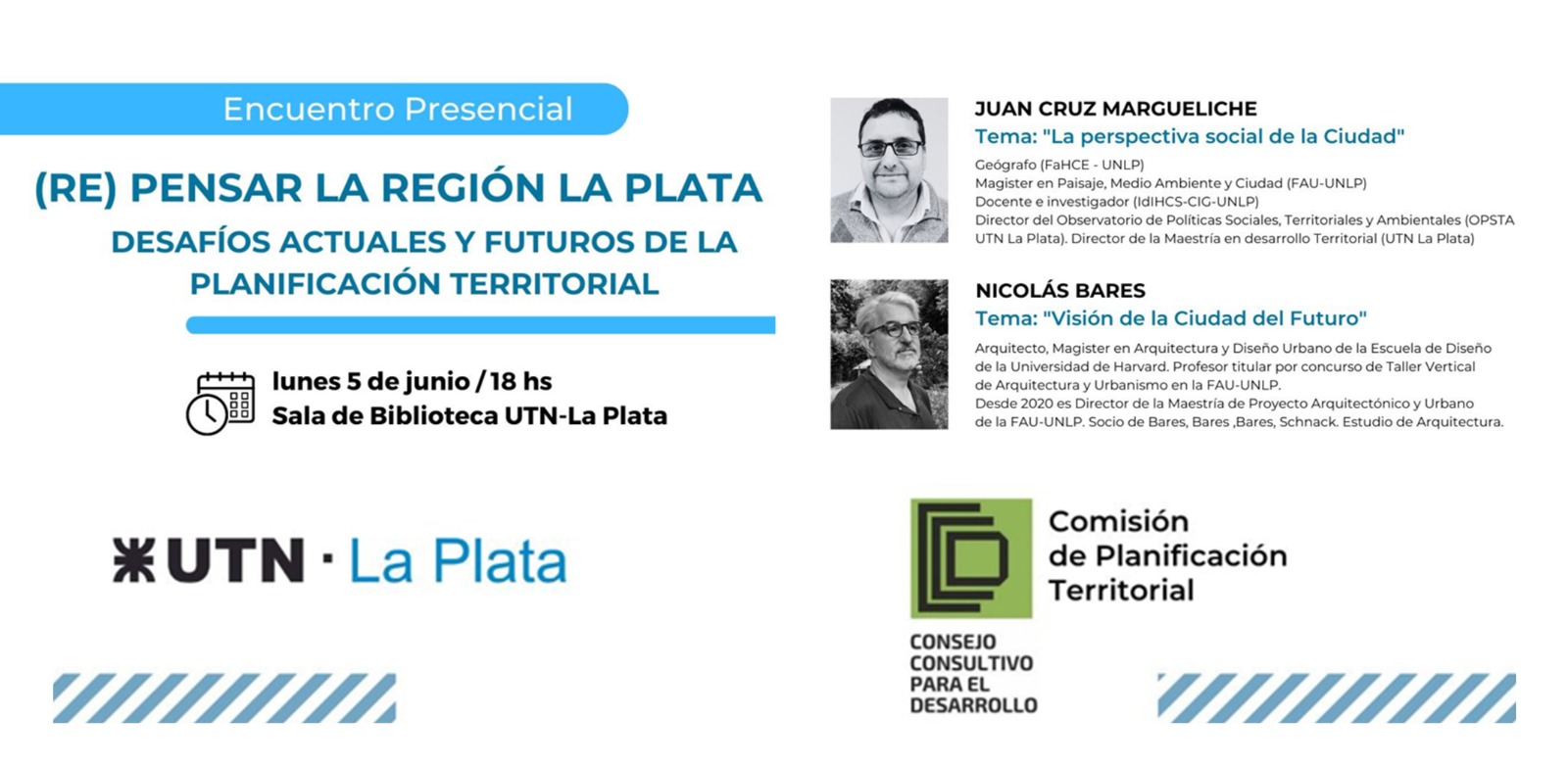 El evento, que tendrá sede en la Biblioteca de la Universidad Tecnológica Nacional de La Plata – Calle 60 y 124 S/N-, y tendrá como expositores al Geógrafo Juan Cruz MARGUELICHE , que disertará sobre “La perspectiva social de la Ciudad”, y el Arq. Nicolás BARES sobre la “Visión de la Ciudad del Futuro”, con la moderación de José María Randazzo y Jorge Jurado.