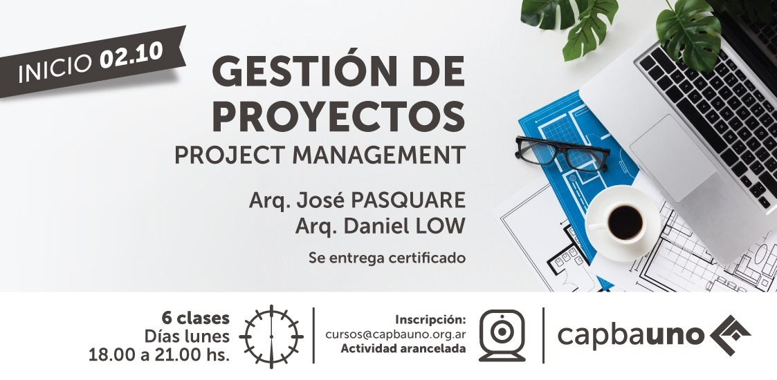 A partir del lunes 2 de octubre a las 18 hs, se desarrollará formato virtual una capacitación de GESTIÓN DE PROYECTOS (“Project Management”) a cargo de los Arqs. José Pasquare y Daniel Low y con una duración de 6 clases.