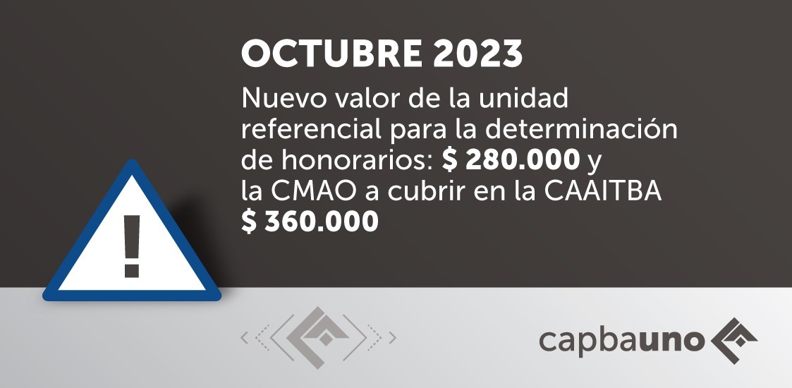 Conforme a lo acordado entre los colegios integrantes de la Caja de Previsión Social para Agrimensores, Arquitectos, Ingenieros y Técnicos de la Pcia. De Bs. As.-, se estableció que desde el 1 de octubre del corriente entrará en valor el nuevo valor para la UNIDAD REFERENCIAL, quedando la misma establecida en $ 280.000 (doscientos ochenta mil pesos), con un factor de corrección = 14. Por otro lado, la CMAO -Cuota Mínima Anual Obligatoria- a cubrir en la CAAITBA, será de $ 360.000.