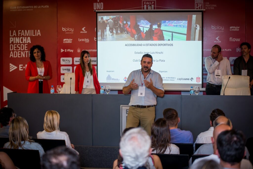 El jueves 16/11 en las instalaciones del Estadio Jorge Luis Hirschi – “UNO”- se realizó una jornada dedicada a la Accesibilidad en los Estadios Deportivos, dirigida a profesionales, dirigentes de clubes y distintas ONG’s, donde se ejemplifico sobre la temática en las acciones promovidas por el Club Estudiantes con la colaboración con la Comisión de Accesibilidad y Movilidad Urbana del CAPBAUNO, a partir del convenio suscripto oportunamente.