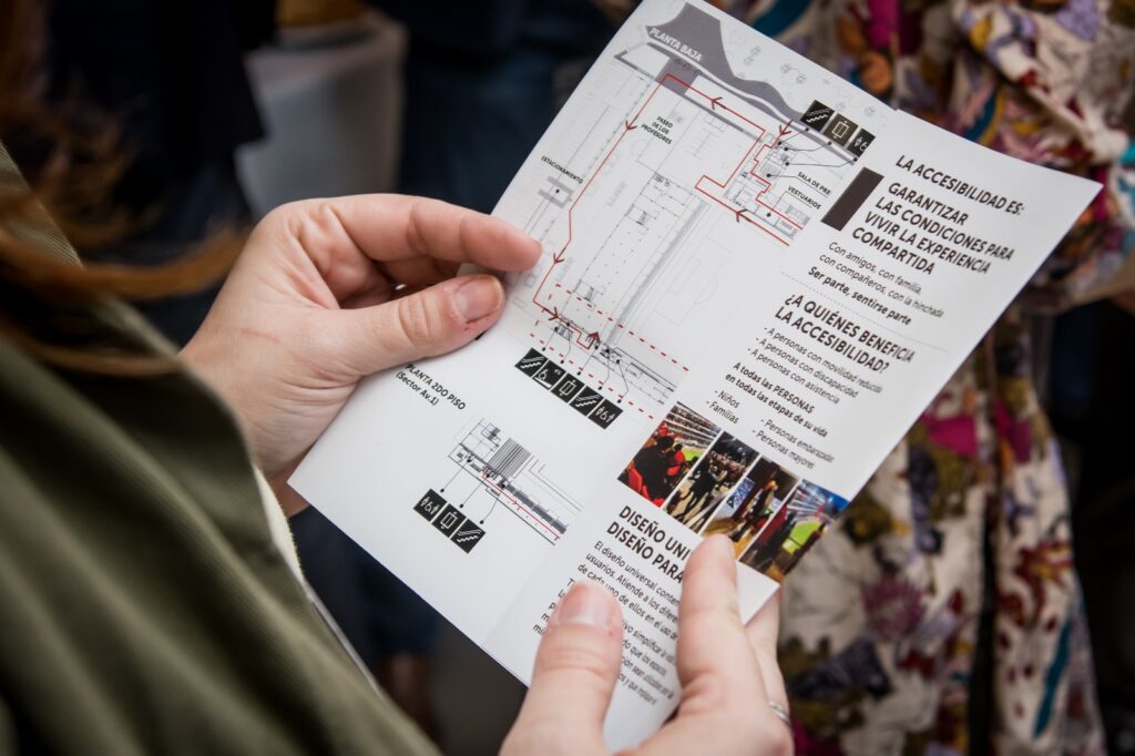 Se exhibió la disposición de rampas y ascensores, el tratamiento de los espacios circulatorios, la señalética, el diseño de los sanitarios, la utilización de solados adecuados y demás intervenciones técnicas para permitir el uso integrado y autónomo de las instalaciones, incluyendo el entorno inmediato -medios de llegada, estacionamientos, accesos-, para verificar el cumplimiento de la “cadena de accesibilidad”.