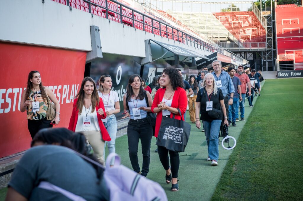 En representación del Club, el Vicepresidente 2do, Juan Prates, y el encargado de la Secretaría de Obras del Club, Arq. Miguel Ángel Menno, se explayaron sobre los objetivos generales de seguridad, sustentabilidad, accesibilidad, cuidado del medio ambiente e innovación tecnológica que se persiguieron en la construcción del nuevo estadio, que llevó a conseguir entre otros logros la certificación EDGE y lo posiciona como uno de los escenarios más modernos del país.