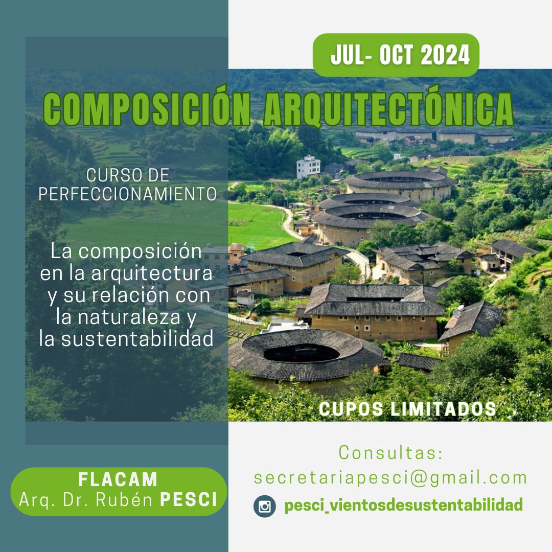 En el marco de las actividades de FLACAM -Foro Latinoamericano de Ciencias Ambientes-, de julio a octubre se desarrollará el curso de perfeccionamiento en Composición Arquitectónica, en modalidad hibrida, virtual con la posibilidad de actividades presenciales para los residentes en el área cercana a la ciudad de La Plata.