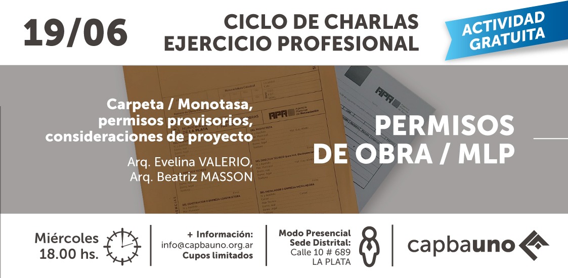 Charla llevada adelante por las Arqs. Evelina Valerio y Beatriz Masson, con el objetivo de orientar al profesional en los distintos pasos administrativos para la consecución de los permisos de obra, desde la recabación de datos del inmueble, la confección de la carpeta de obra, la solicitud de permisos provisorios y el conocimiento de las consideraciones proyectuales básicas a tener en cuenta.