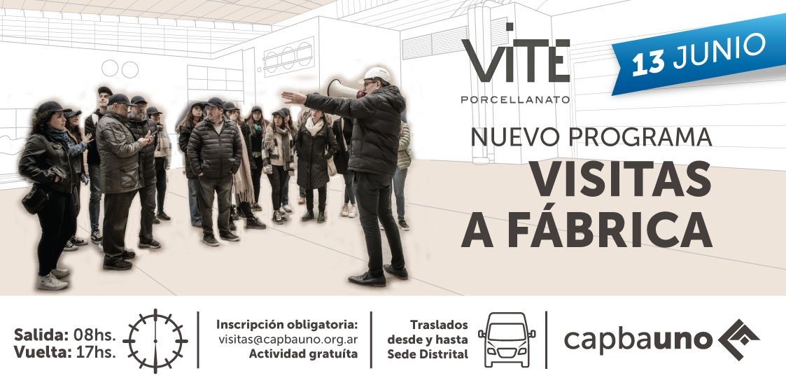 En el marco del programa de vinculación entre la matrícula y empresas líderes en la provisión de insumos de la actividad de la construcción desarrollado por el CAPBAUNO, el jueves 13/6 se formalizará una visita a la planta de producción en J. C. Paz de la empresa VITE -especializada en la fabricación de porcellanatos de alta gama, en diseños y formatos exclusivos símil madera, cemento, mármol y otros-.