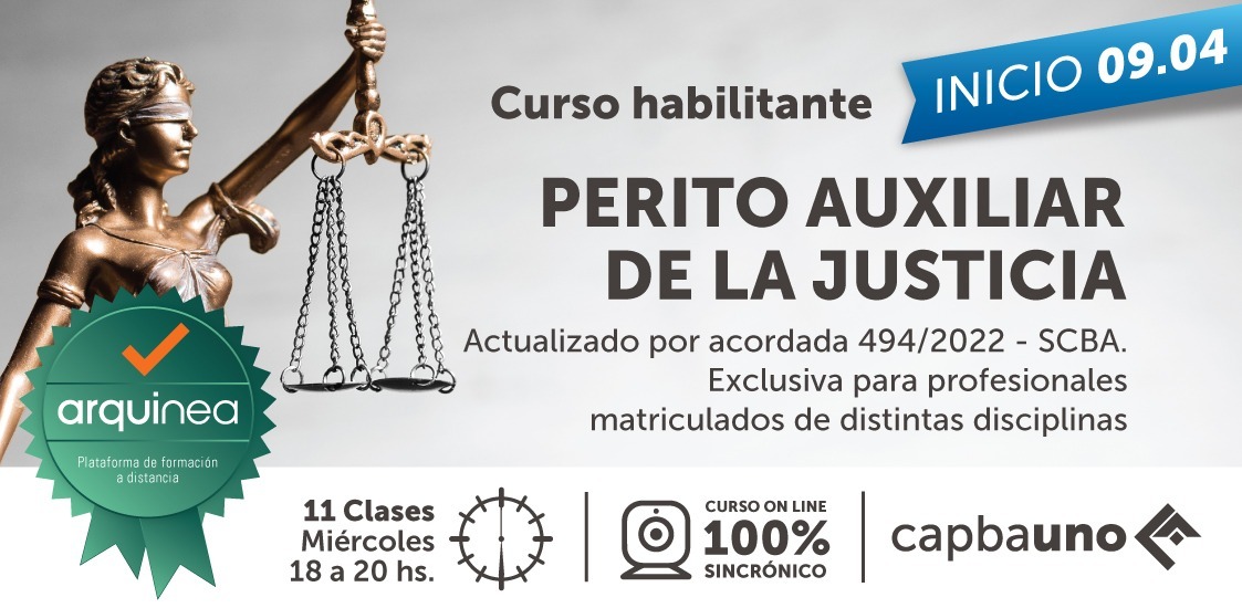 El Curso en su edición 2025-, tiene como fin capacitar a matriculados para obtener la habilitación para ejercer como profesional auxiliar de la justicia (perito) del Poder Judicial en todo el ámbito de la provincia de Buenos Aires.