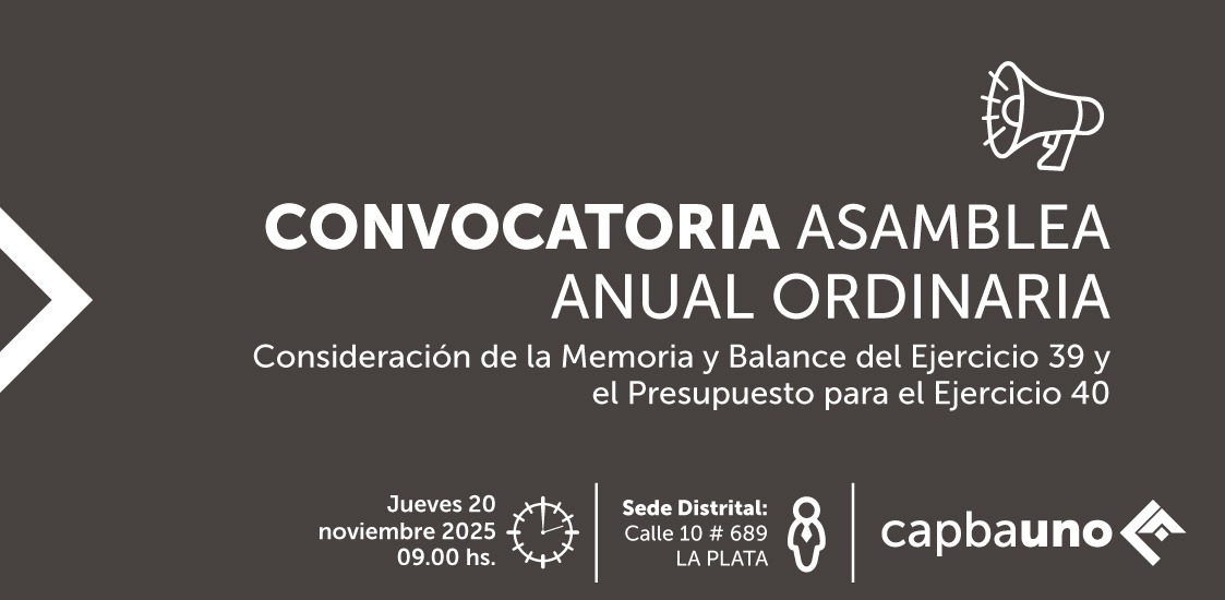 Conforme a lo establecido en el Art. 35º de la Ley 10.405, el CAPBAUNO convoca a la matrícula a participar de la Asamblea Anual Ordinaria, el principal ámbito de discusión y evaluación de las acciones realizadas en el período que concluyó el 30 de septiembre de 2025.