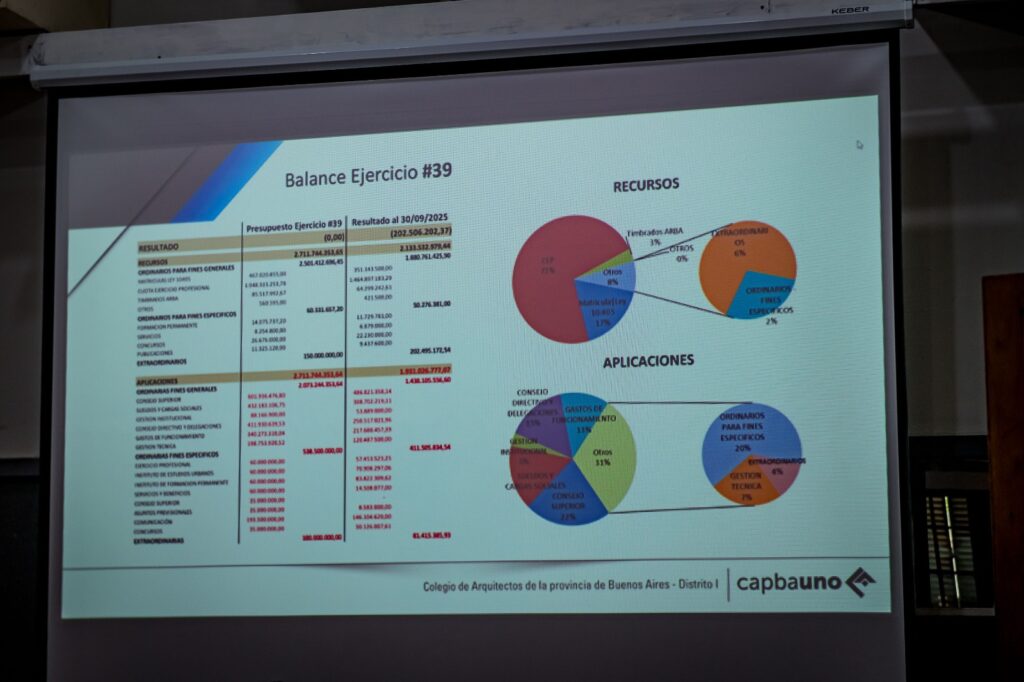 Seguidamente, el Tesorero Arq. Rubén Aprea expuso una síntesis de los estados contables institucionales, que evidenció una disminución de los ingresos previstos en el presupuesto, que fue compensado con una administración austera, dando el ejercicio un superávit operativo del orden de los 200 millones, sin que ello significara restringir ninguna acción de gobierno planteada. Se aprobó el Balance por unanimidad.