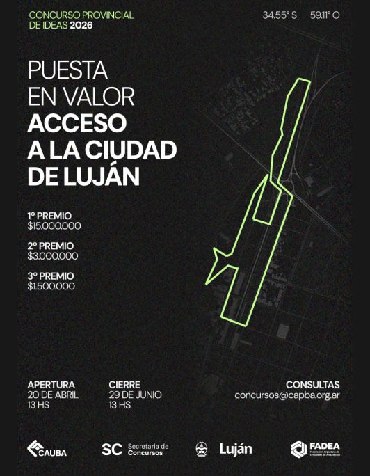 Promovido por la Municipalidad de la Ciudad de Luján y organizado por el CAUBA CS, busca ideas para resolver el área del entorno de acceso a la Basílica de Nuestra Señora de Luján, desde la rotonda de la Ruta 47 hasta la Basílica.