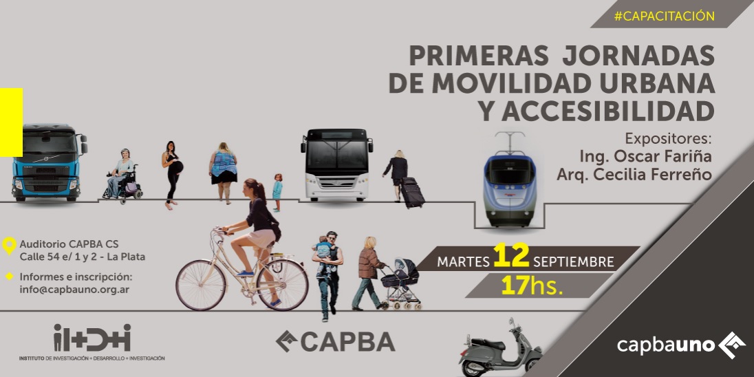 Organizada por el Capbauno conjuntamente con el I+D+I (Instituto de Investigación, Desarrollo e Innovación), se desarrolló el martes 12 de septiembre 2017 a las 17 hs en el Auditorio del Consejo Superior del CAPBA (calle 54 e/ 1 y 2), abordando «Estrategias de Movilidad y Accesibilidad sustentable y su aplicación