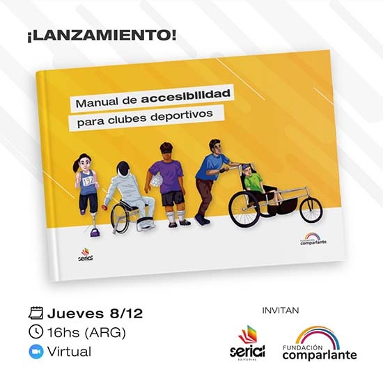 El jueves 8/12 a las 16 hs, virtualmente a través de la plataforma ZOOM, se realizará la presentación del “Manual de accesibilidad para clubes deportivos”, promovido por la Fundación Comparlante.
