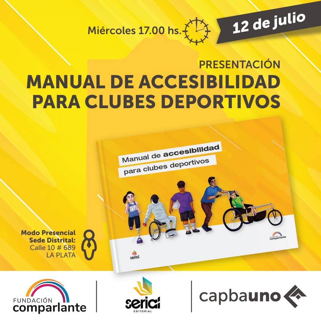 El miércoles 12/7 a las 17 hs en la Sede Distrital del CAPBAUNO, se formalizará la presentación del Manual de Accesibilidad para Clubes Deportivos, que elaboró la Fundación Comparlante para que los mismos puedan dar los primeros pasos para adaptar sus espacios, con la colaboración del la Comisión de Accesibilidad