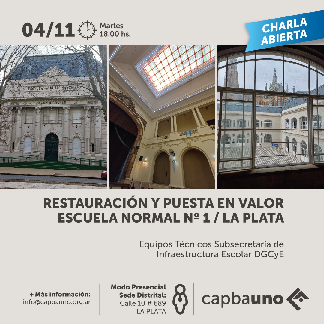 El martes 4/11 a las 18 hs en la Sede Distrital, tendrá lugar una charla de presentación del Proyecto de Restauración y Puesta en Valor del edificio de la Escuela Normal N° 1 "Mary O. Graham".