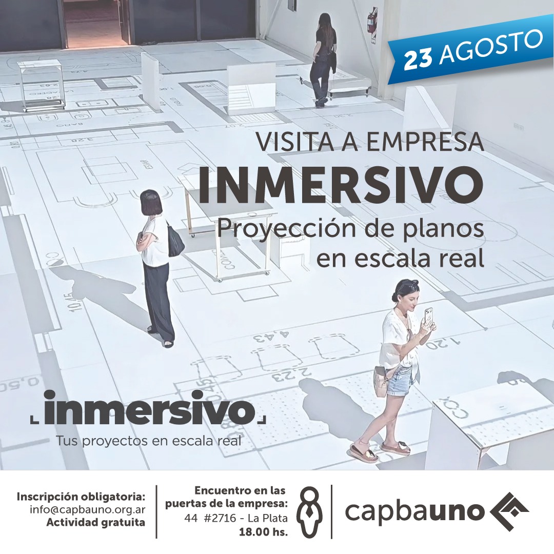 En el marco del programa de vinculación entre la matrícula y empresas relacionadas con la actividad de la construcción desarrollado por el CAPBAUNO, el viernes 23/8 se formalizará una visita a la empresa INMERSIVO, dedicada a la proyección de planos en escala real.