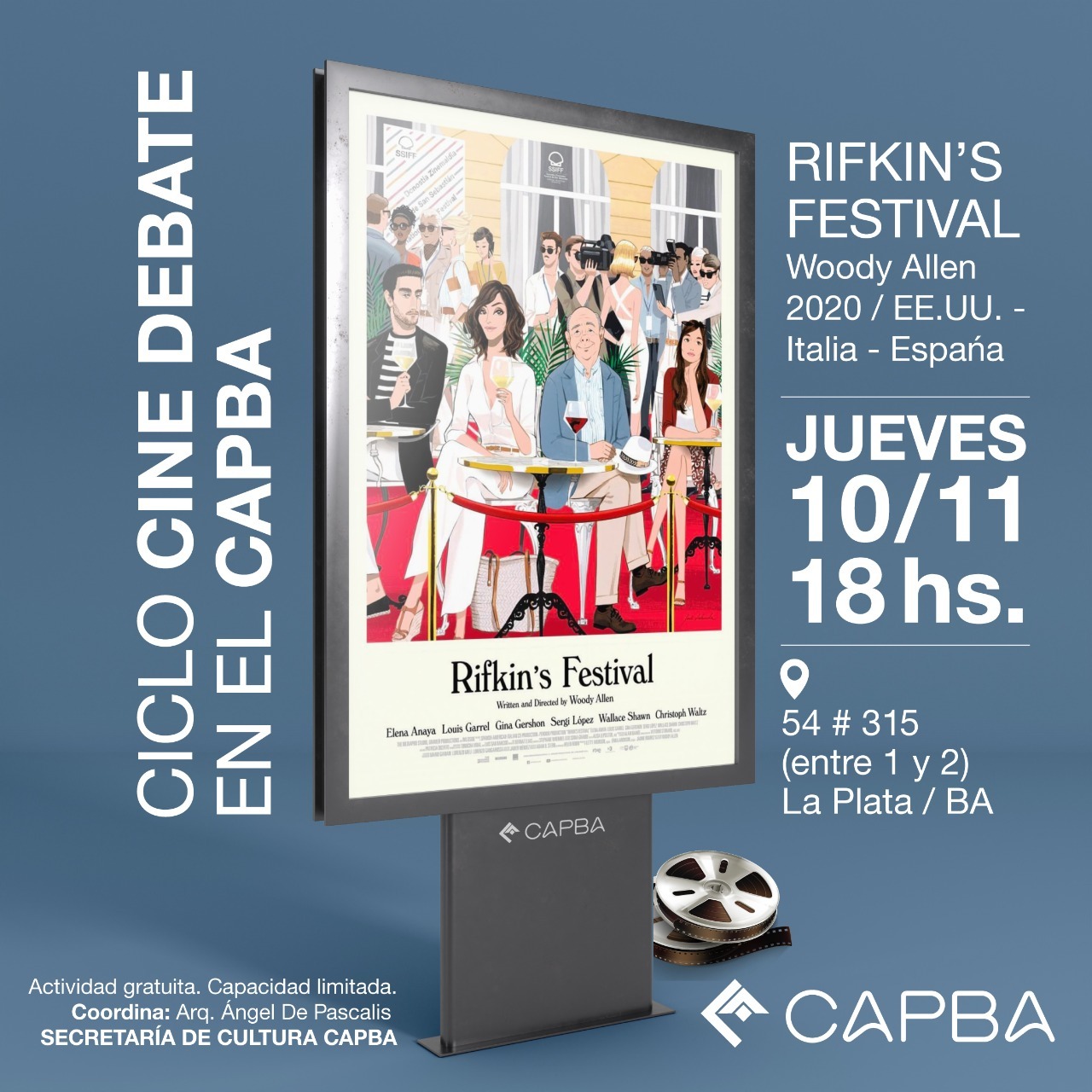 Comienza un nuevo Ciclo de Cine-Debate en el CAPBAUNO bajo la coordinación del Arq. Ángel De Pascalis, en el cual se proyectarán películas de reconocidos directores internacionales.
