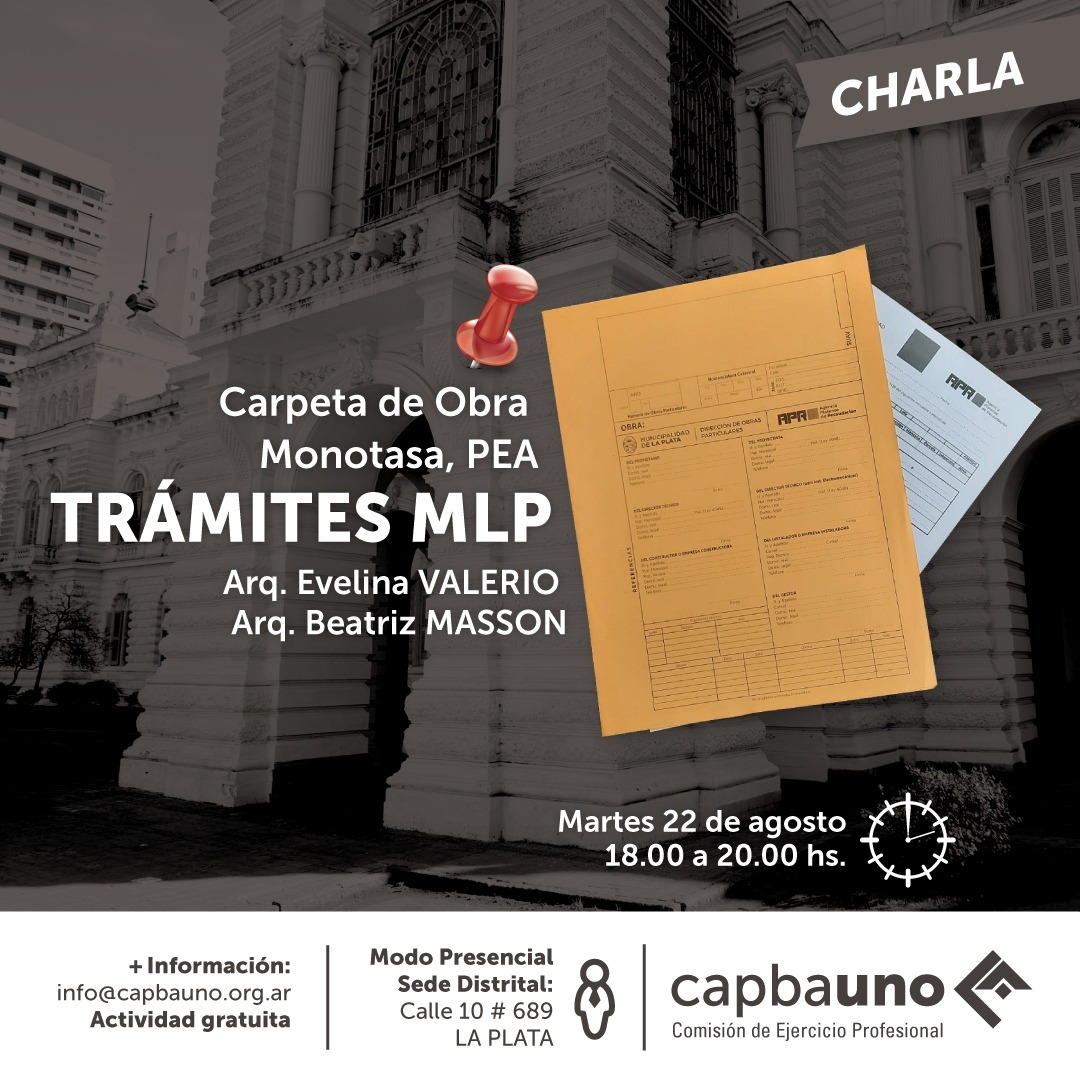 El martes 22/8 a las 18 hs en la Sede Distrital, organizada por la Comisión de Ejercicio Profesional del CAPBAUNO y a cargo de las Arqs. Beatriz Masson y Evelina Valerio, tendrá lugar una charla explicativa sobre los procesos para la tramitación de expedientes de obra en el Municipio de