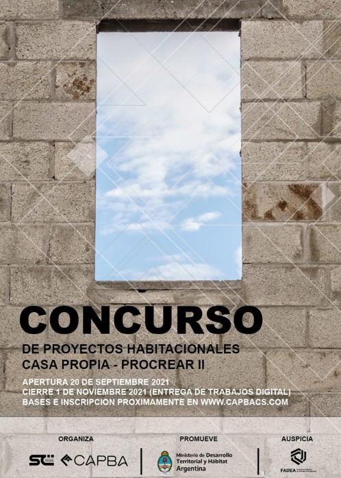 El Fideicomiso “PROGRAMA CRÉDITO ARGENTINO DEL BICENTENARIO PARA LA VIVIENDA ÚNICA, FAMILIAR (PRO.CRE.AR)”, promotor del presente llamado, encarga al Colegio de Arquitectos de la provincia de Buenos Aires (CAPBA) la organización, realización y difusión del CONCURSO DE PROYECTOS HABITACIONALES CASA