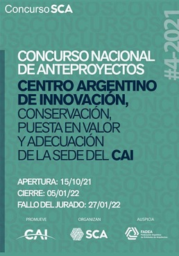 El Centro Argentino de Ingenieros (CAI), promotor del presente llamado, encarga a la Sociedad Central de Arquitectos (SCA) la organización, realización y difusión de un Concurso Nacional de Anteproyectos Vinculante denominado Centro Argentino de Innovación Conservación Puesta en Valor y