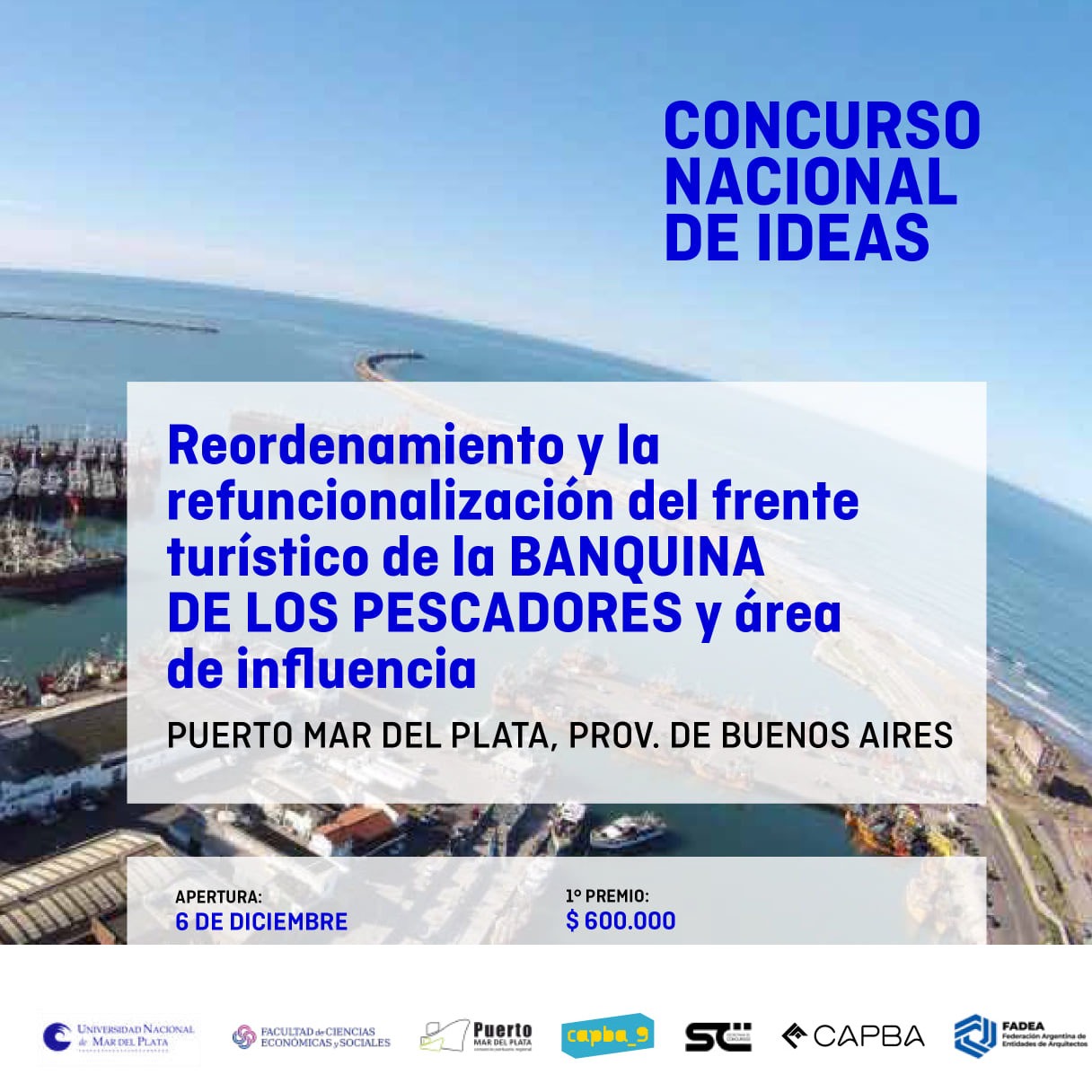 Conforme al convenio suscrito entre el CONSORCIO PORTUARIO REGIONAL DE MAR DEL PLATA; la FACULTAD DE CIENCIAS ECONÓMICAS Y SOCIALES DE LA UNIVERSIDAD NACIONAL DE MAR DEL PLATA como auspiciante y el Colegio de Arquitectos de la Provincia de Buenos