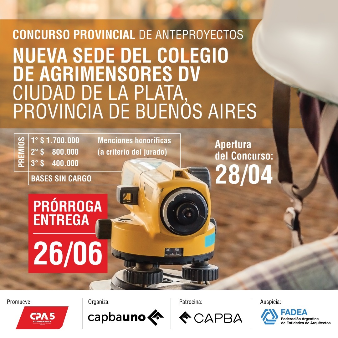 Promovido por el Colegio de Agrimensores DV -dependiente del Consejo Profesional de Agrimensura de la Pcia. de Bs. AS.-, auspiciado por FADEA y organizado por el Colegio de Arquitectos D1, el concurso tiene por objetivo obtener un producto arquitectónico que
