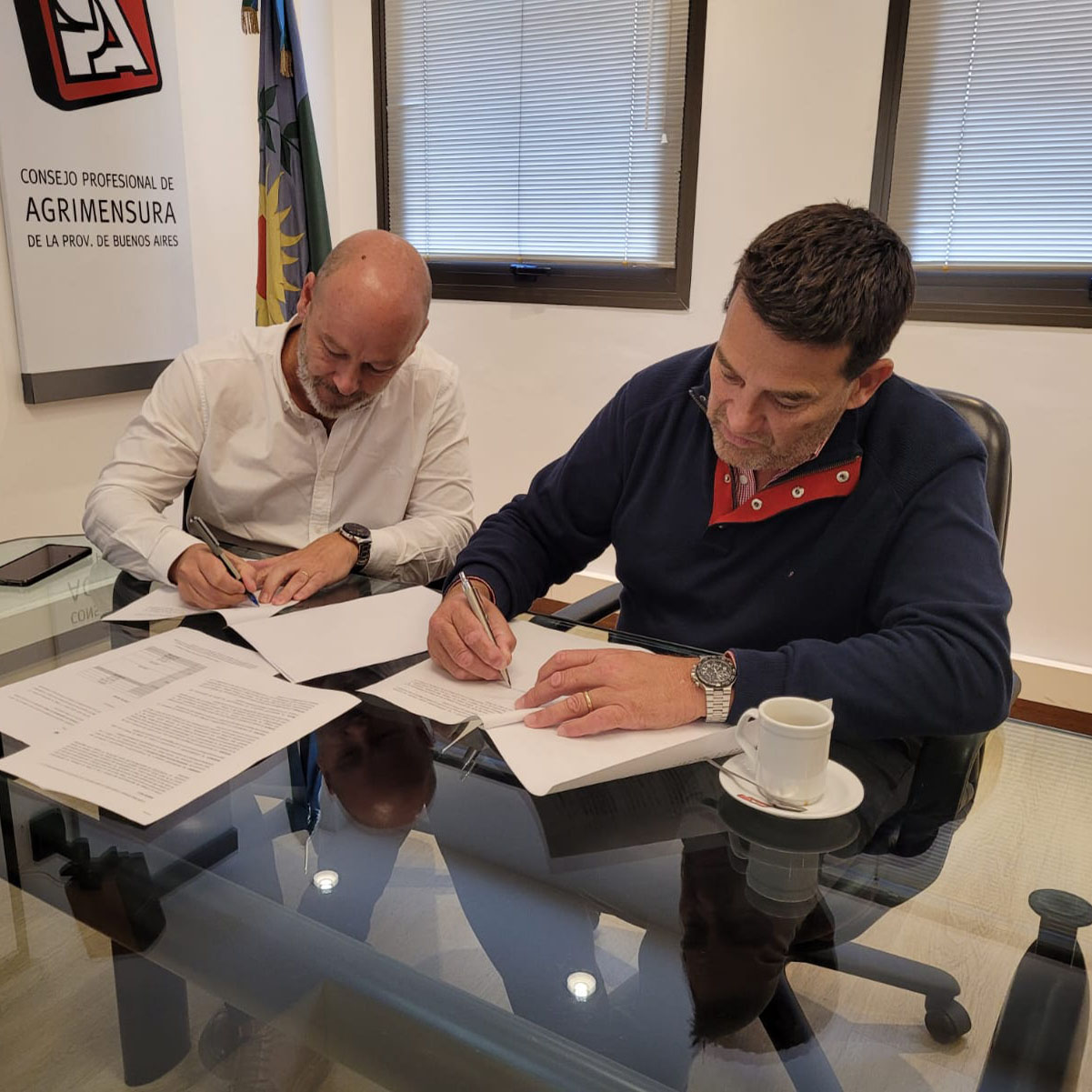 Producto del acuerdo rubricado entre sus Presidentes -Agrimensor Diego MORRONE y el Arq. Gustavo CASCO-, el CAPBAUNO organiza un Concurso Provincial de Anteproyectos para la edificación de la nueva sede del Colegio de Agrimensores Distrito V, en un predio ubicado