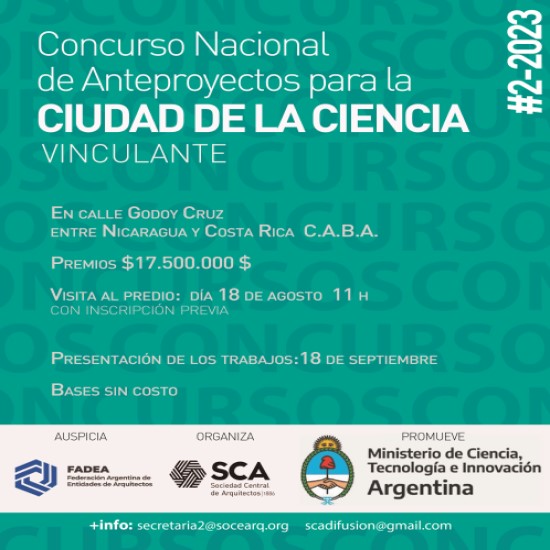 Concurso de Anteproyectos para obtener la mejor y más innovadora propuesta arquitectónica para los nuevos edificios, que se sumarán al Polo Científico y Tecnológico conformando la Ciudad de la Ciencia.
