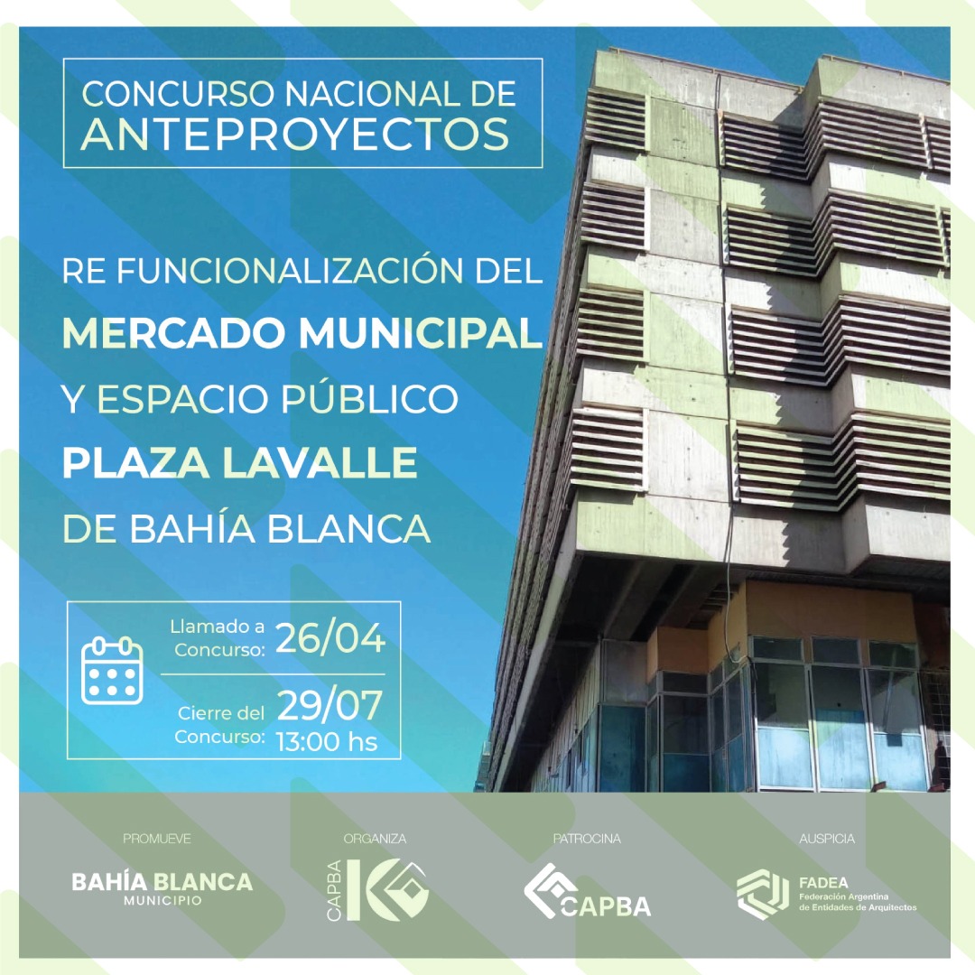 CONCURSO NACIONAL DE ANTEPROYECTOS PARA LA RE-FUNCIONALIZACIÓN Y PUESTA EN VALOR DEL MERCADO MUNICIPAL Y ESPACIO PÚBLICO PLAZA LAVALLE / BAHÍA BLANCA