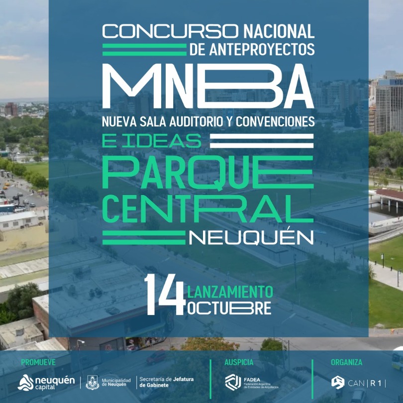Promovido por la Municipalidad de Neuquén y organizado por el Colegio de Arquitectos de Neuquén, con el auspicio de FADEA, abrió su convocatoria el “CONCURSO NACIONAL DE ANTEPROYECTOS PARA SALA AUDITORIO Y CONVENCIONES E IDEAS PARA EL PARQUE CENTRAL”.