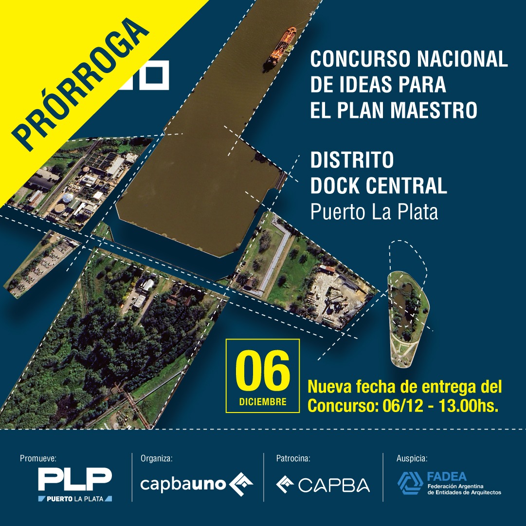 Promovido por el Consorcio Gestión Puerto La Plata y organizado por el CAPBAUNO, con el patrocinio de CAPBA CS y el auspicio de FADEA, el concurso tiene por objeto seleccionar una Idea Urbana/Arquitectónica para el Plan Maestro Distrito Dock Central