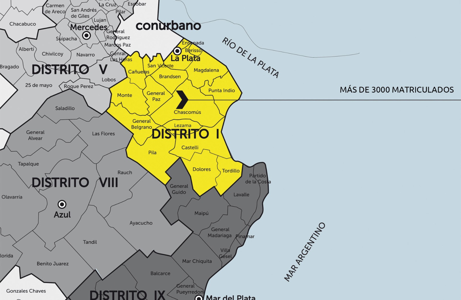 Estos son los Partidos que conforman el Distrito UNO del Colegio de Arquitectos de la provincia de Buenos Aires.