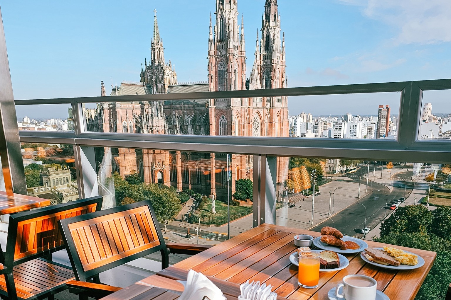 Urbano y moderno, frente a la Plaza Moreno, la Catedral y el Palacio Municipal, en el centro geográfico de la ciudad, con desayuno buffet, espacios para trabajar dentro y fuera de las habitaciones y Gimnasio.