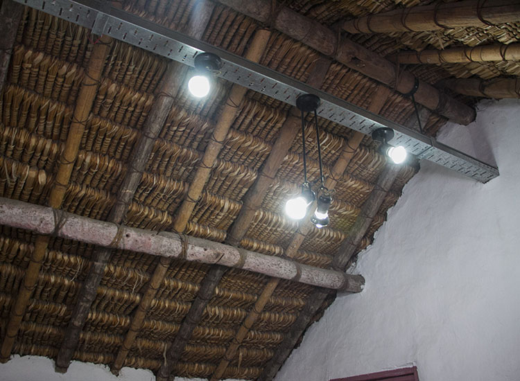 A modo de protección, la construcción se encuentra resguardada por cubierta por un tinglado de chapa.