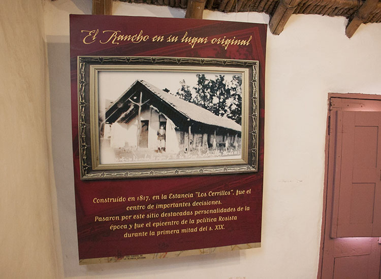 El “Rancho” era una típica construcción bonaerense de su época, donde el techo esta materializado con un entramado de tacuara y troncos de palmera atados con tientos de cuero de potro, las paredes de adobe -barro y paja- de unos 45 cm de espesor y una planta tipo “chorizo”, con cinco habitaciones sucesivas con accesos independientes.