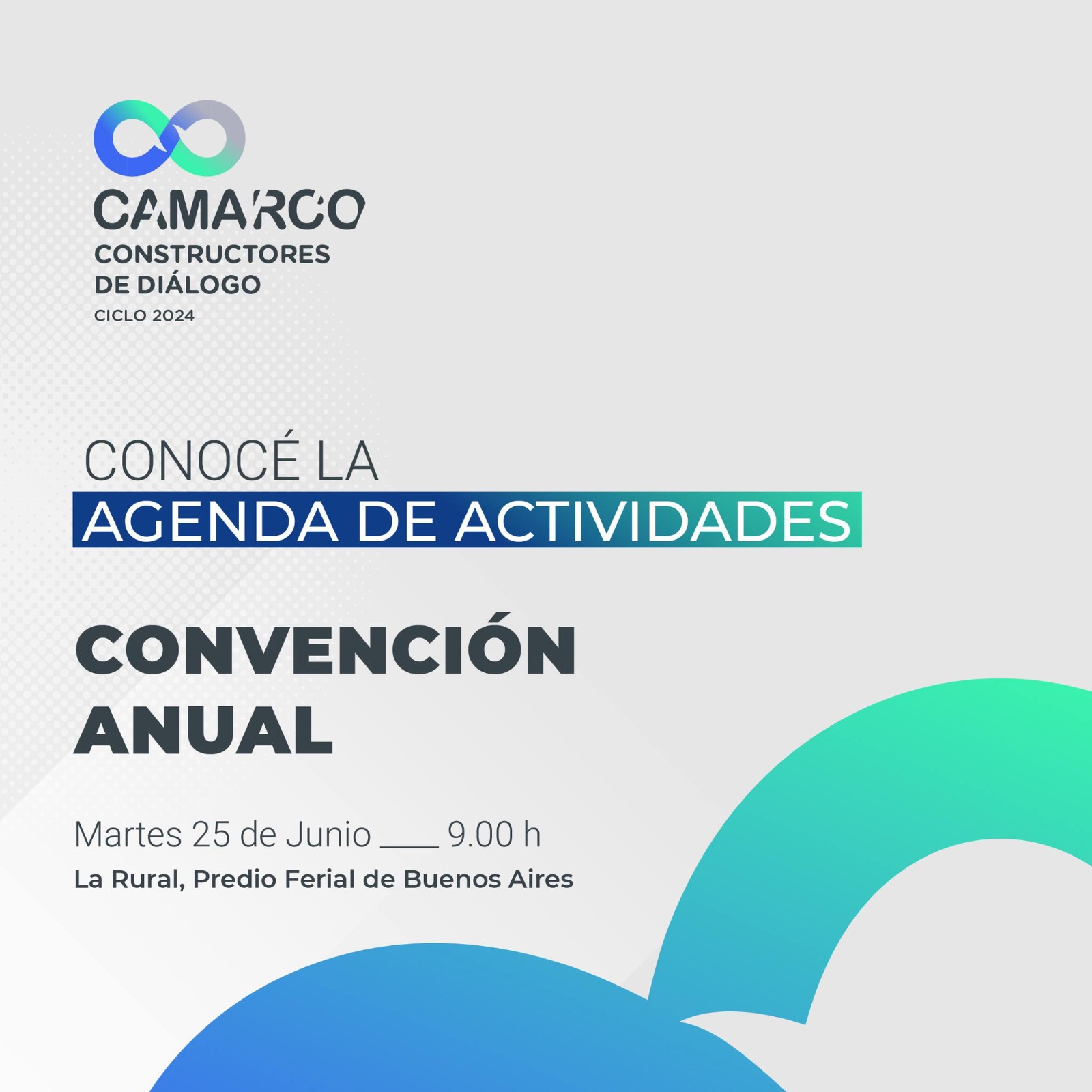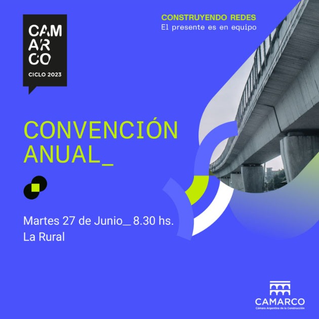 El martes 27 de junio en el predio de la Sociedad Rural - CABA, la Cámara Argentina de la Construcción celebra su Convención Anual, evento principal que dará inicio al Ciclo CAMARCO 2023, que es una propuesta de la Cámara que busca impulsar la innovación, la planificación, la equidad y la formación en el