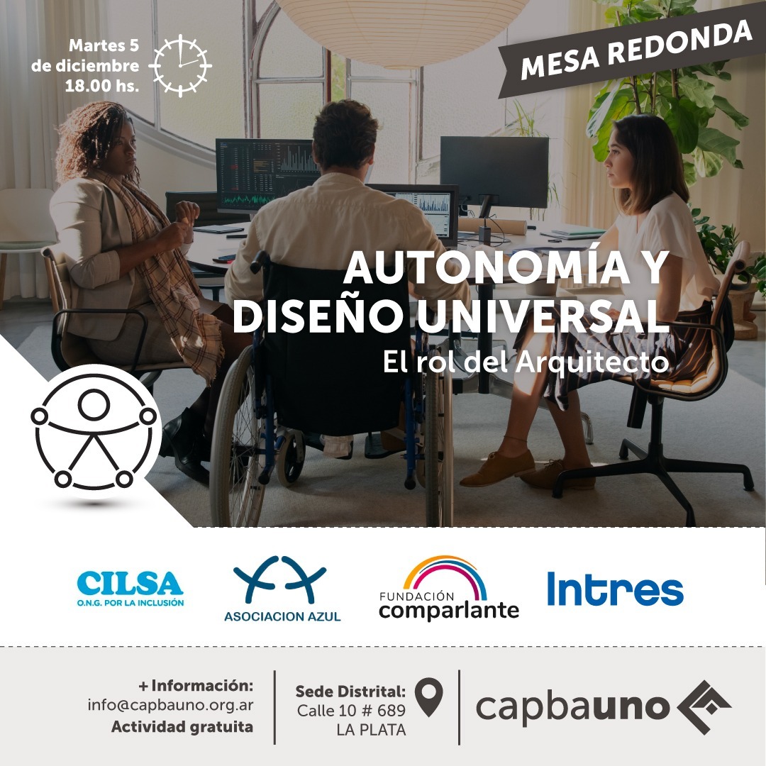 El martes 5/12 a las 18 hs en la Sede Distrital, organizada por la Comisión de Accesibilidad y Movilidad Urbana del CAPBAUNO, se desarrollará una mesa redonda para tratar el rol de los Arquitectos en la búsqueda de la Autonomía y el Diseño Universal al servicio de todas las personas.