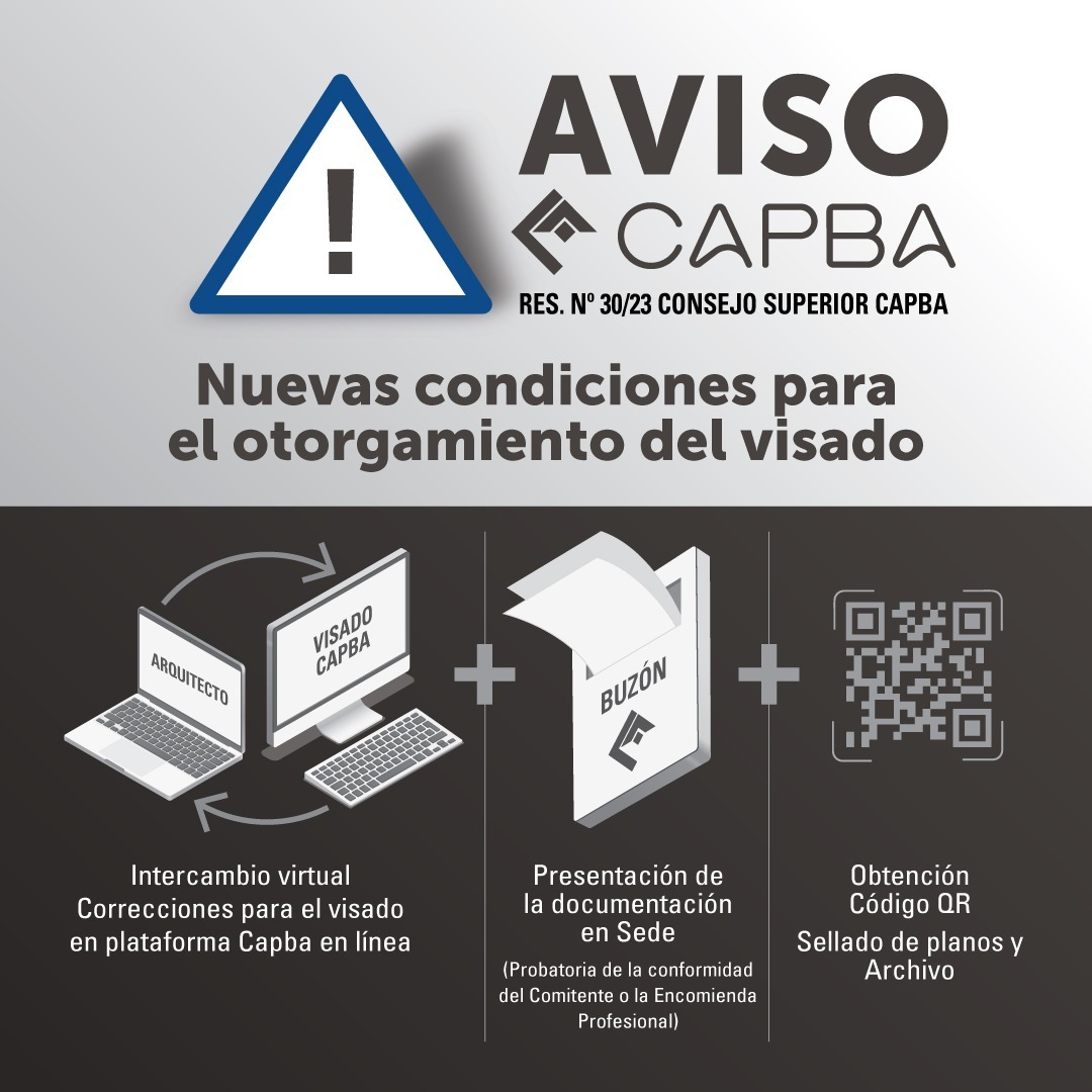 El Consejo Superior del CAPBA, a través de la Resolución n°30/23 (VER), instruyo a los distritos sobre los nuevos requisitos obligatorios para el visado de tareas profesionales, derogando las disposiciones que con carácter excepcional se tomaran en ocasión de la vigencia del aislamiento sanitario -ASPO-.