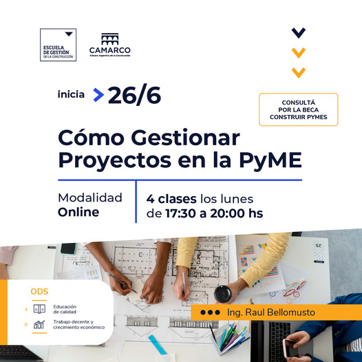 La Escuela de Gestión de la Construcción de la Cámara Argentina de la Construcción -CAMARCO-, lanzó una nueva capacitación dirigida a emprendedores y PYMES de la construcción, que tiene por objetivo de establecer pautas para aprender y aplicar una forma estructurada y estandarizada para ser más efectivos, mejorar la productividad