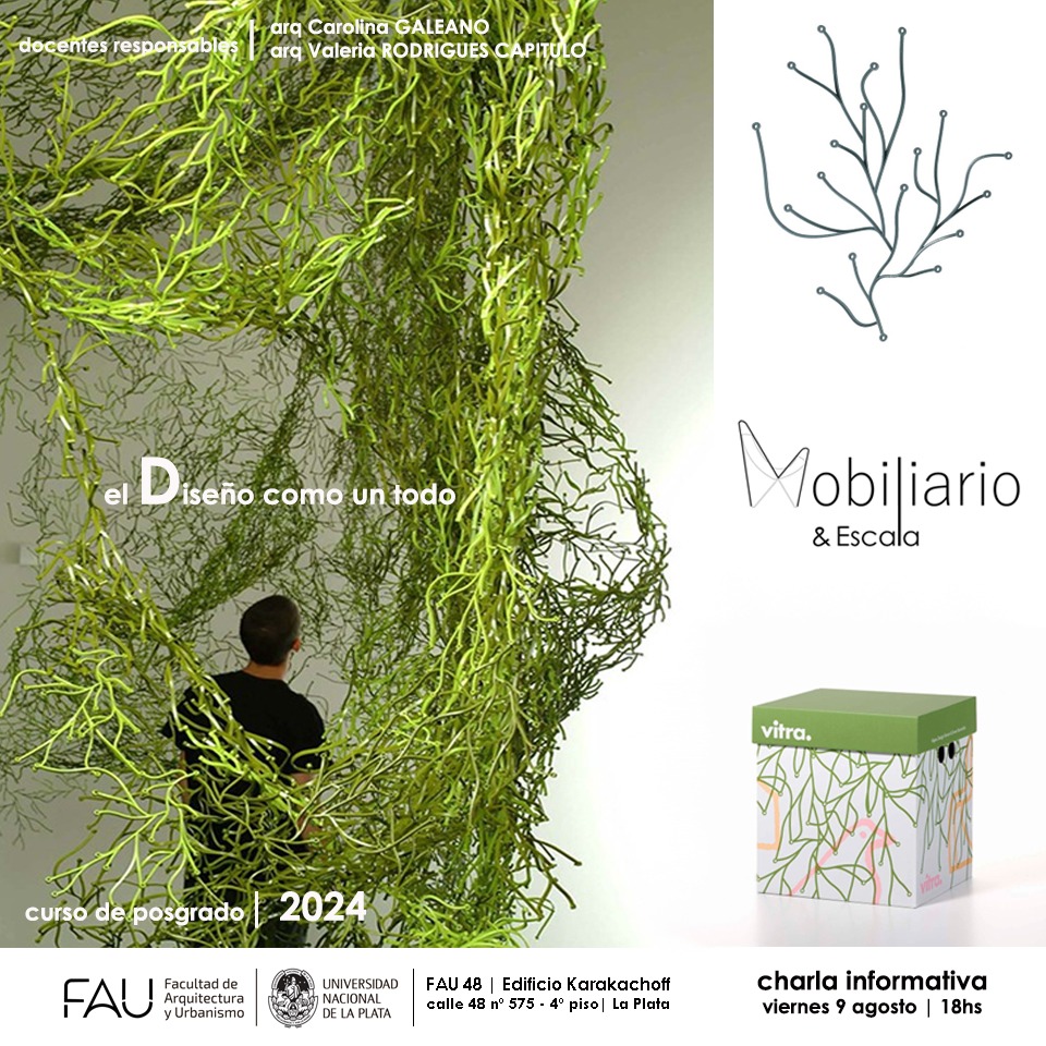 Entre el 23/8 y el 8/11, en el marco de las actividades de posgrado de la Facultad de Arquitectura y Urbanismo, se dictará el curso “Mobiliario & Escala – El Diseño como un todo”, a cargo de las Arqs. Carolina GALEANO y Valeria RODRIGUES CAPITULO.