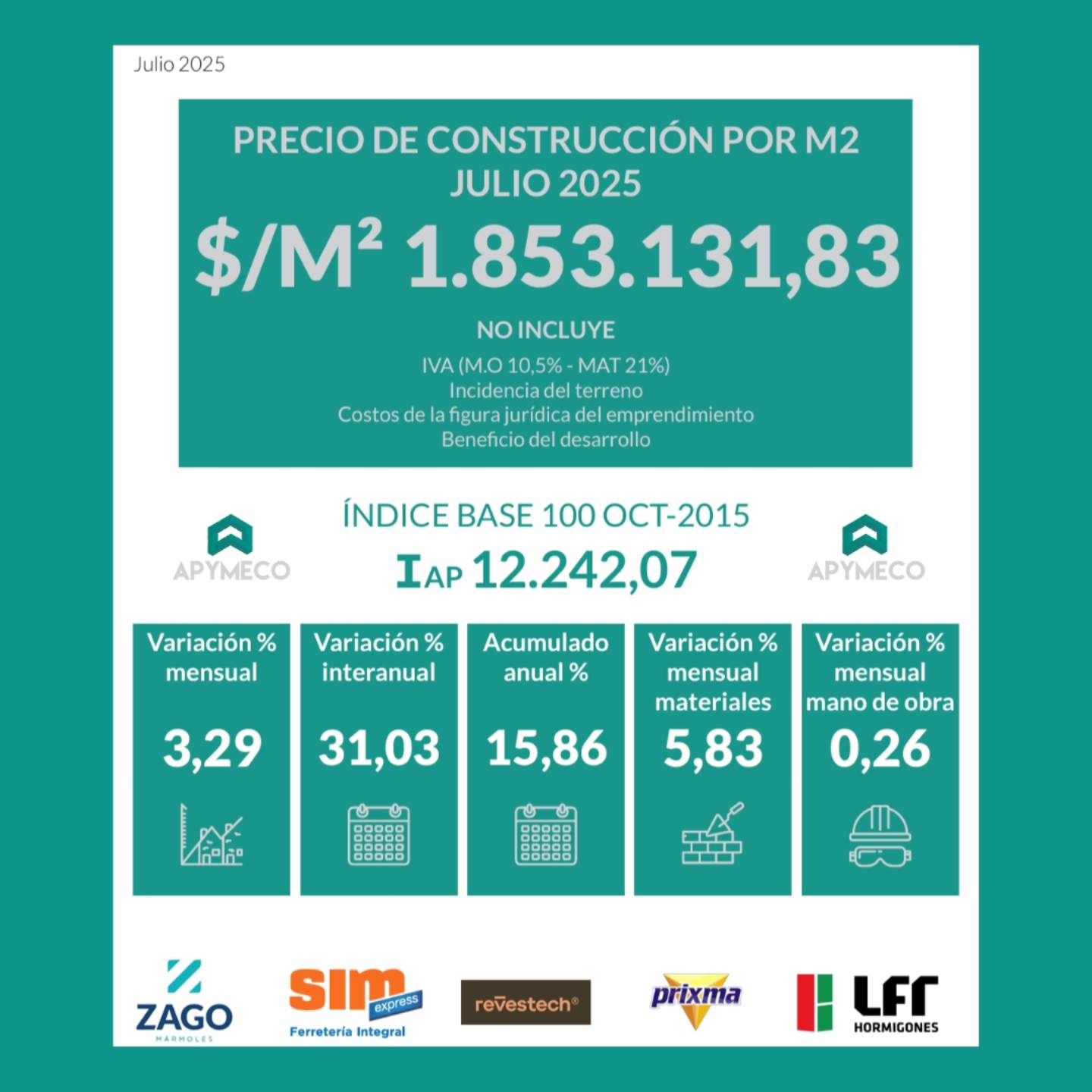 ÍNDICE DE LA CONSTRUCCIÓN: JULIO 2025