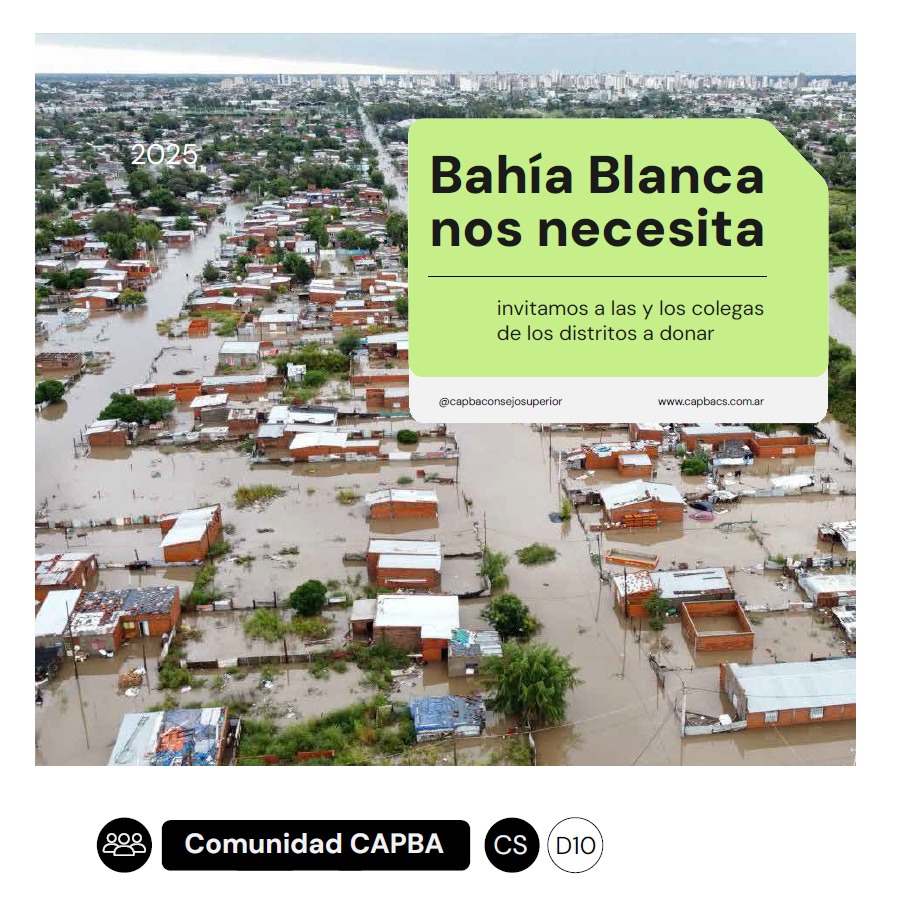 Desde el CS del CAPBA y Distritos, se invita a la matrícula y allegados a la institución a sumarse a una colecta solidaria para ayudar a Bahía Blanca.