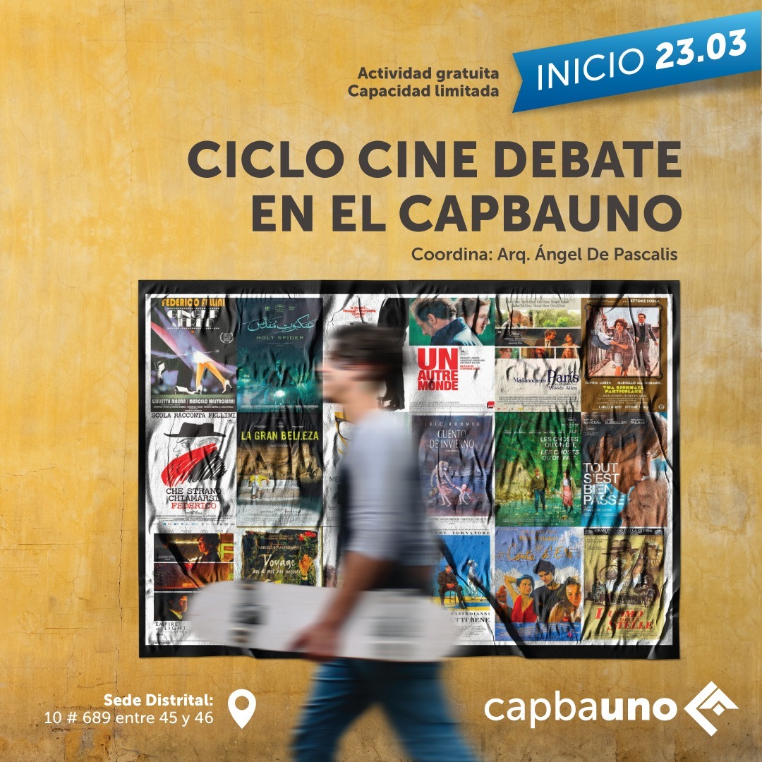 Comienza un nuevo Ciclo de Cine-Debate en el CAPBAUNO bajo la coordinación del Arq. Ángel De Pascalis, en el cuál se proyectarán películas de reconocidos directores internacionales.