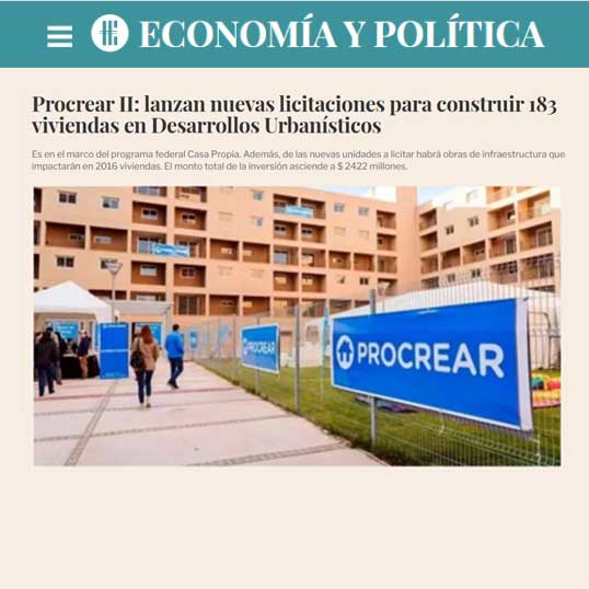 El Ministerio de Desarrollo Territorial y Hábitat, anunció la apertura de licitaciones para construir 183 viviendas en las provincias de Entre Ríos y Buenos Aires, en el marco del plan Procrear II.