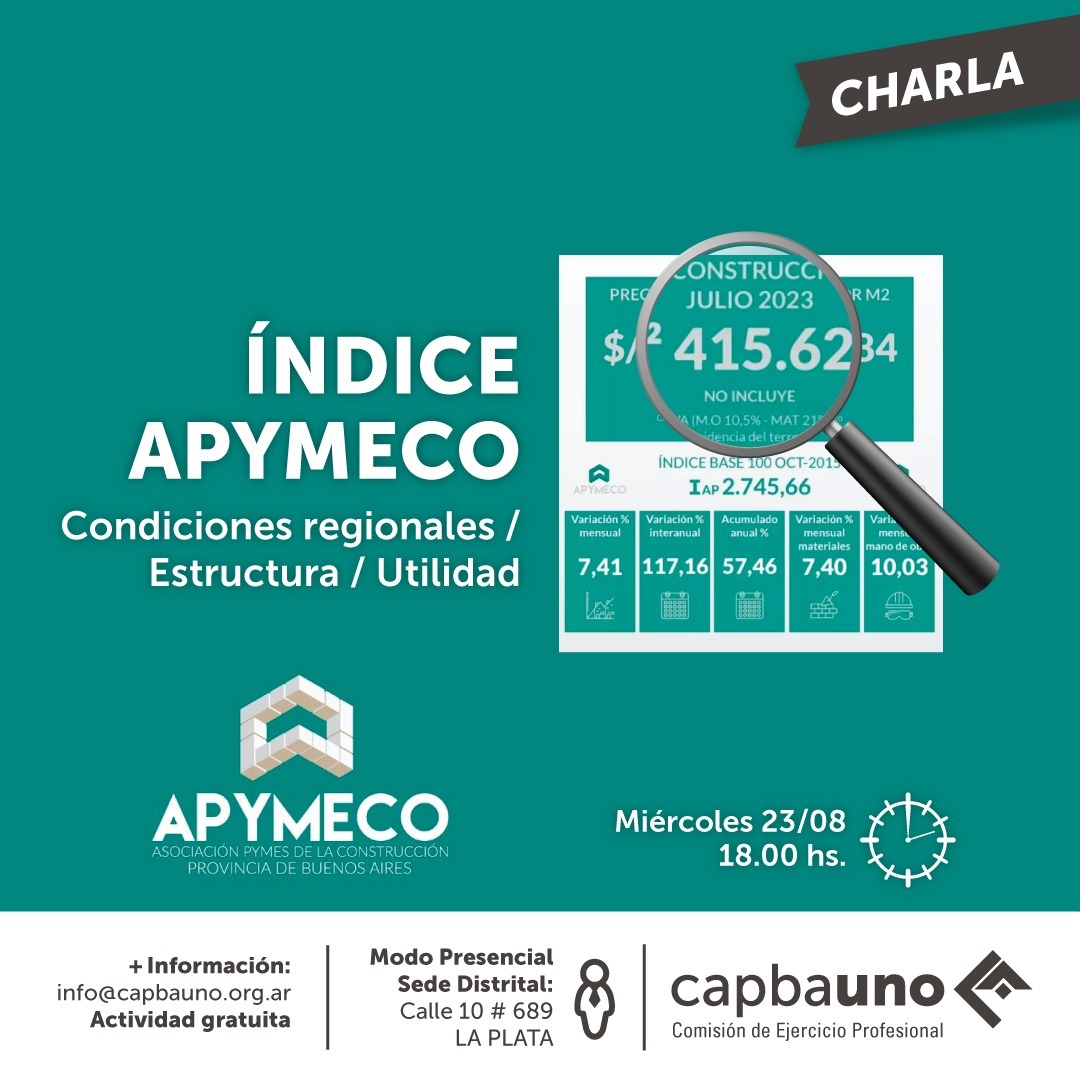 El miércoles 23/8, a las 18 hs en la Sede Distrital, se desarrollará una charla explicativa sobre el “INDICE APYMECO / Condiciones regionales / Estructura / Utilidad”.
